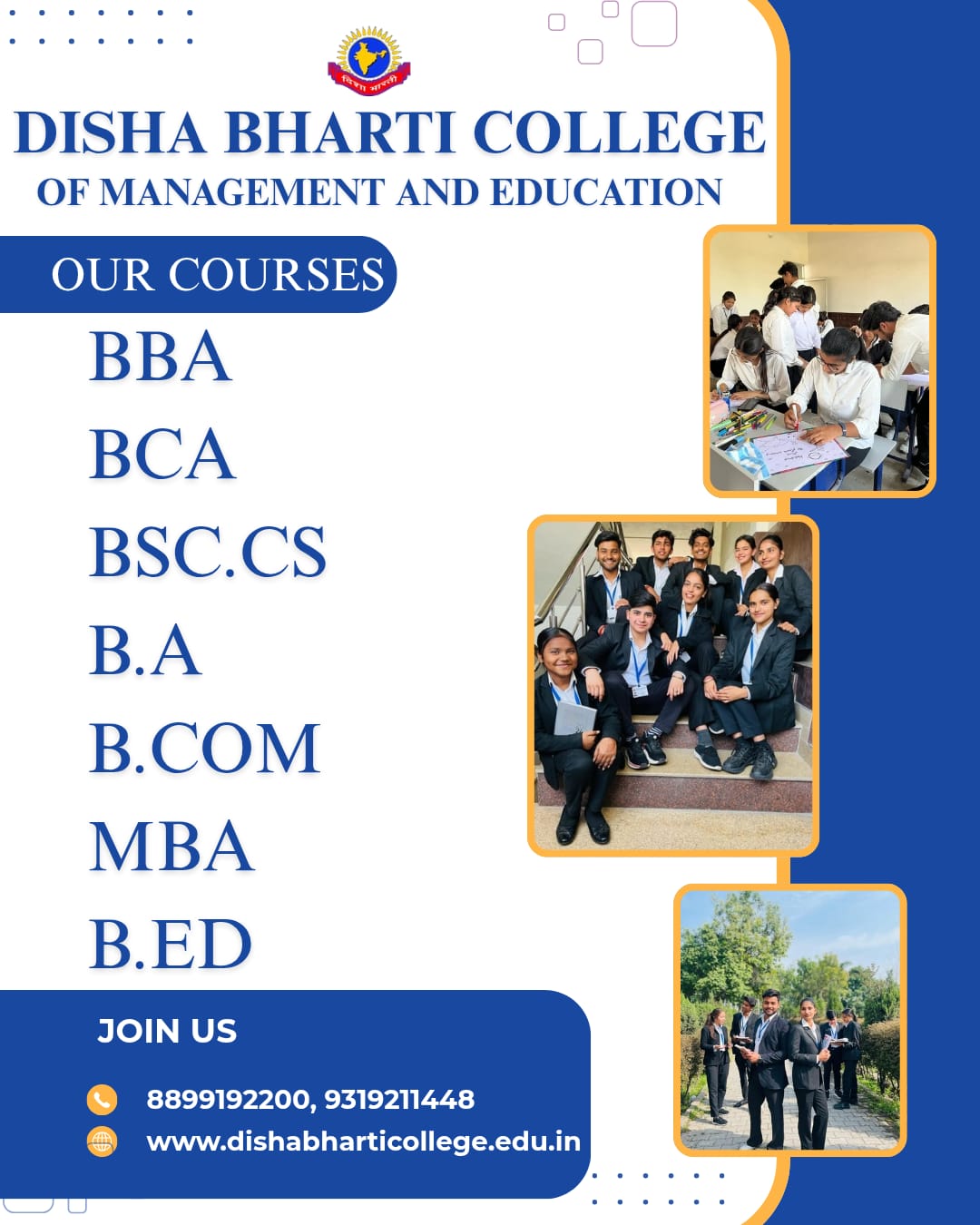 Today, Orientation program was organized to welcome new students of B.COM, B.A and MBA in Disha Bharti Family to join personal growth, nurture their talents, learn right way of work culture, new friendships and endless opportunities.