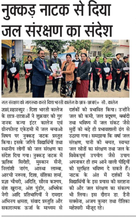 • Press Release of “Save Water Campaign” A Nukkad Natak played by students of Disha Bharti College.